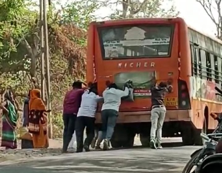 ઉના વેરાવળ એસ.ટી બસ ઘાટવડ બસ અચાનક ખામી સર્જાતા બંધ પડી હતી એસટી વિભાગના સલામત સવારી એસટી અમારીના સુત્રના ધજાગરા જોવા મળ્યા હતા ત્યારે સલામત સવારીને બદલે એસટીને ધકકા મારીને ચલાવી હતી એસટી તંત્ર દ્રારા બસોનું બરાબર મેન્ટનન્સ નહી થતા અનેક એવી એસટી બસો રોડ ઉપર ઊભી રહી જવાના કારણે મુસાફરો મુશ્કેલીનો સામનો કરવાનો વારો આવે છે એસટી બસ રોડ પર અચાનક બંધ થતા ટ્રાફીક જામ પણ થયો હતો અને મુસાફરો હેરાન પરેશાન થયા હતા.