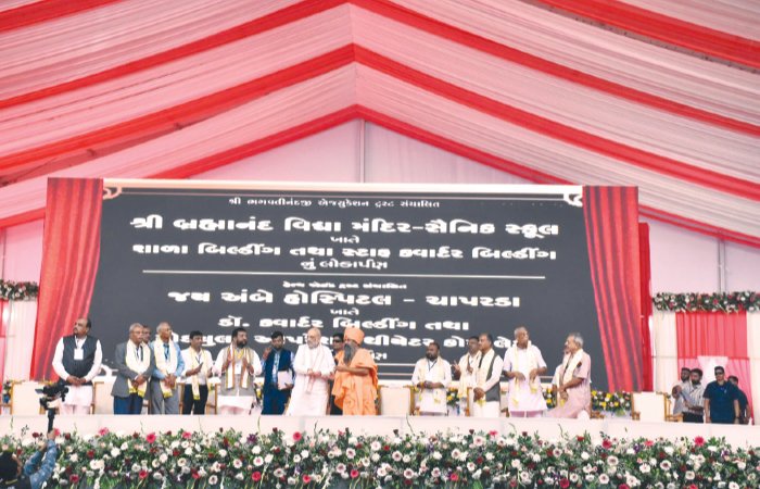 કેન્દ્રીય ગૃહ મંત્રી અમિતભાઈ શાહના હસ્તે સૈનિક સ્કૂલ શાળા બિલ્ડીંગનું લોકાર્પણ અને પૂજ્ય મુક્તાનંદ બાપુ મેડિકલ કોલેજનું ખાતમુહૂર્ત કરવામાં આવ્યું કેન્દ્રીય ગૃહ અને સહકારિતા મંત્રી અમિતભાઈ શાહના હસ્તે જુનાગઢ જિલ્લાના ચાપરડા સ્થિત બ્રહ્માનંદ વિદ્યાધામ ખાતે મુક્તાનંદ બાપુની પ્રેરક ઉપસ્થિતિમાં સૈનિક સ્કૂલ શાળા બિલ્ડીંગ, સૈનિક સ્કૂલ સ્ટાફ ક્વાર્ટર ભવન, જય અંબે હોસ્પિટલ ડોક્ટર ક્વાર્ટર બિલ્ડીંગ, જય અંબે હોસ્પિટલ મોડ્યુલર ઓપરેશન થિયેટર કોમ્પ્લેક્સ અને બ્રહ્માનંદ વિદ્યાધામ અતિથિ ભવનનું લોકાર્પણ તેમજ પૂજ્ય મુક્તાનંદ બાપુ મેડિકલ કોલેજ એન્ડ રિસર્ચ ઇન્સ્ટિટ્યૂટ,શ્રી બ્રહ્માનંદ વિદ્યામંદિર સંસ્કૃત શક્તિ ગુરુકુળનું ખાતમુહૂર્ત કરવામાં આવ્યું હતું.કેન્દ્રીય ગૃહ અને સહકારિતા મંત્રી અમિતભાઈ શાહે આ અવસરે આનંદની લાગણી વ્યક્ત કરતા કહ્યું કે શ્રી મુક્તાનંદ બાપુના નેતૃત્વમાં બ્રહ્માનંદ ધામમાં ચાર હજારથી વધુ વિદ્યાર્થીઓ અભ્યાસ કરે છે. શિક્ષણ ઉપરાંત અન્ય માનવસેવાના કાર્યો સંસ્થામાં આગળ વધી રહ્યા છે, શ્રી મુક્તાનંદ બાપુએ કચ્છ- કંડલામાં સેવા કાર્યો પણ કર્યા છે તે અંગે આનંદ વ્યક્ત કરતા વધુમાં કહ્યું કે મુક્તાનંદ બાપુએ મહાકુંભમાં પણ સેવા કાર્યો કર્યા છે.
