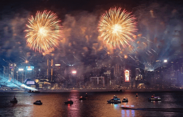 હોંગકોંગમાં નવા વર્ષની ઉજવણી માટે વિક્ટોરિયા હાર્બર પર ફટાકડા ફૂટ્યા હતા.