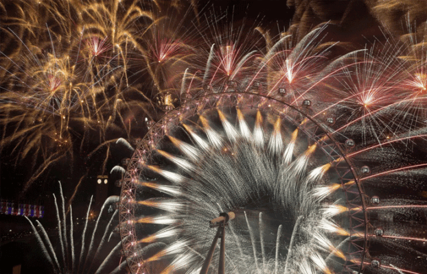 લંડનના થેમ્સ નદીના કિનારે 100,000 લોકો દ્વારા અને ટેલિવિઝન પર ઘણા લોકોએ નિહાળેલા 12-મિનિટના અદભૂત આતશબાજીનું પ્રદર્શન કર્યું હતું.