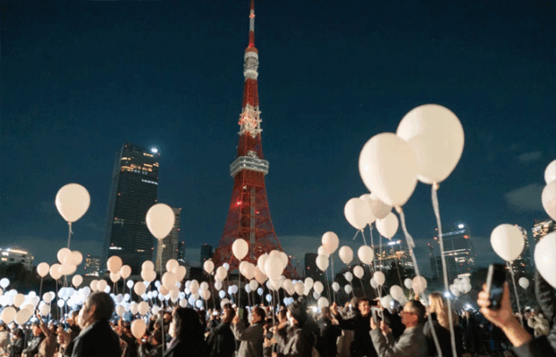 કાઉન્ટડાઉન ઇવેન્ટ દરમિયાન લોકો ટોક્યો ટાવરની સામે ફુગ્ગા છોડયા હતા. ટોક્યોમાં લોકોએ 2024 ના રાશિચક્ર, ડ્રેગનના વર્ષના આગમનની ઉજવણી કરી હતી.