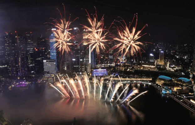 સિંગાપોરમાં નવા વર્ષની ઉજવણી પહેલા ફટાકડા મરિના ખાડીને પ્રકાશિત કરી હતી.