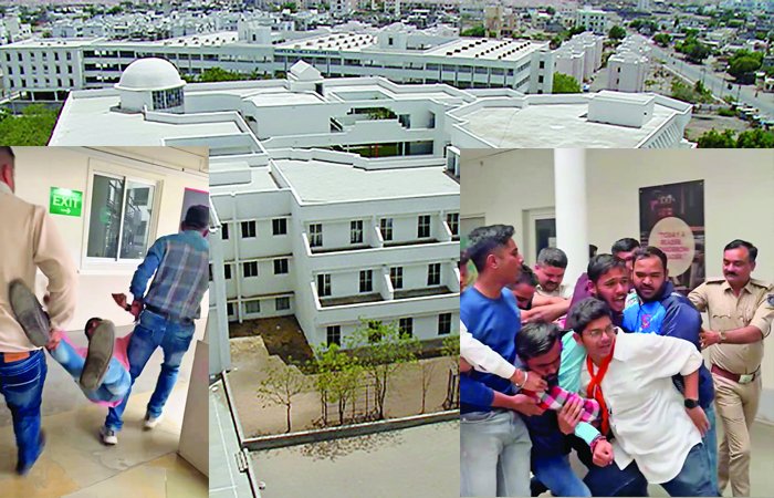 રાજકોટના યુનિવર્સિટી રોડ પર આવેલ એસએનકે સ્કૂલની ધો.6માં અભ્યાસ કરતી વિદ્યાર્થીનિની આ સંસ્થાના ધો.11-12માં ભણતા વિદ્યાર્થીઓ દ્વારા છેડતી કરાતા અને તેનો વીડિયો સોશ્યલ મીડિયા પર વાયરલ થતાં આ ઘટના શિક્ષણજગતમાં ઘેરા પ્રત્યાઘાતો પડ્યા છે. આ મામલે ગઈકાલે અખિલ ભારતીય વિદ્યાર્થી પરિષદના કાર્યકર્તાઓએ શાળા કેમ્પસ ખાતે ઉગ્ર વિરોધ કર્યો હતો અને ત્યારબાદ આજે આ કાર્યકર્તાઓ જિલ્લા શિક્ષણ અધિકારી કચેરી ખાતે પહોંચ્યા હતા અને સૂત્રોચ્ચાર સાથે હલ્લાબોલ કર્યો હતો. આ દરમિયાન ઇન્ચાર્જ જિલ્લા શિક્ષણ અધિકારી કિરીટસિંહ પરમારે વિદ્યાર્થિનીનો વીડિયો જોઈ કહ્યુ કે, આ ઘટનામાં એજયુકેશન ઇન્સ્પેક્ટરની કમિટી રચી સ્કૂલ સામે કડક પગલાં લેવામાં આવશે.
