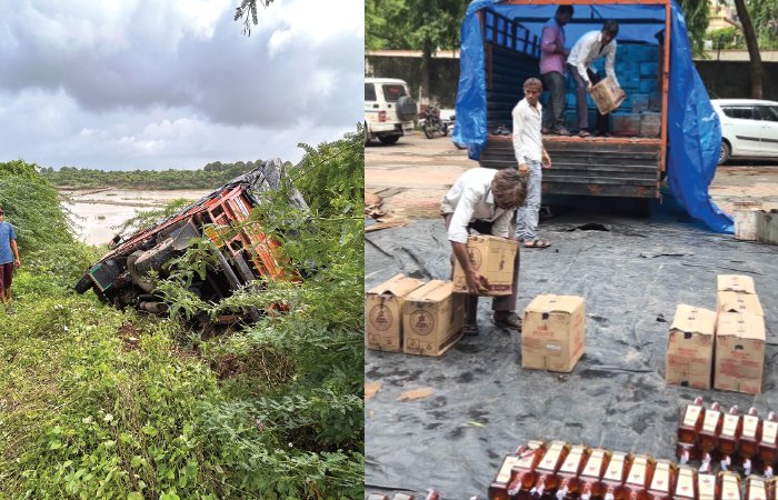 જૂનાગઢ એલસીબીએ દારૂ ભરેલ ટ્રક પાછળ પીછો કરતા ટ્રક પલ્ટી મારી ગઇ