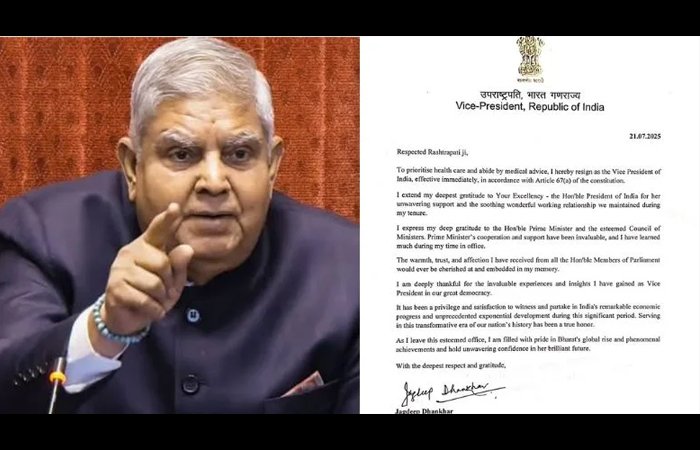 સ્વાસ્થ્ય અને ડોકટરની સલાહનું પાલન કરીને રાજીનામું આપવાના ઉપરાષ્ટ્રપતિ ધનખડનાં નિર્ણય સામે અનેક સવાલો : ધનખડના રાજીનામાં બાદ કોણ બનશે ઉપરાષ્ટ્રપતિ? ભાજપ પાસે પુરતું સંખ્યાબળ નથી ત્યારે નીતિશકુમાર અને ચંદ્રાબાબુ નાયડુને પિચ પર લાવવા પડશે
