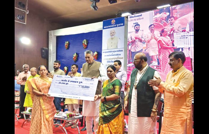 જૂનાગઢ સ્થિત શામળદાસ ટાઉન હોલ ખાતે આ સમારોહ યોજાયો હતો જેમાં જૂનાગઢ મહાનગરપાલિકા દ્વારા હાથ ધરવામાં આવનાર વિકાસ કાર્યોમાં વોર્ડ નંબર 8, 9, અને 10 માં વોટર સપ્લાય માટે ડિસ્ટ્રીબ્યુટ અને નેટવર્કની કામગીરી, જોઈન પાઇપલાઇન, સ્વિમિંગ પૂલ ફેજ -2, શહેરના વિવિધ વિસ્તારમાં સી.સી. રોડ અને પેવિગ બ્લોક, અમૃત 2.0 અંતર્ગત પાઇપલાઇનની કામગીરી ઉપરાંત હેરિટેજ બિલ્ડીંગ એવા નરસિંહ વિદ્યા મંદિરનું રુ. 14.91 કરોડના ખર્ચે નવીનીકરણ, મહાનગરપાલિકાના હદમાં આવેલ તમામ મિલકતોનું રુ.9.78 કરોડના ખર્ચે ૠ.ઈં.જ. બેઝ મેપિંગ સહિતના 81 વિકાસ કામોનું ખાતમુહૂર્ત કરવામાં આવ્યું હતું આમ મુખ્યમંત્રી દ્વારા રુ.384.92 કરોડના વિકાસ કાર્યોનું ખાતમુહૂર્ત ઉપરાંત ઈન્દ્રેશ્વર મંદિર ખાતેના વિકાસ કાર્યો, સોલિડ વેસ્ટ સેગ્રિગેશન પ્લાન્ટ સહિતના રુ.12.86 ખર્ચે નિર્મિત 10 વિકાસકામોનું લોકાર્પણ કર્યું હતું જેમાં આ કાર્યક્રમમાં મેયર ગીતાબેન મોહનભાઈ પરમાર, ડેપ્યુટી મેયર ગીરિશભાઈ કોટેચા, સ્થાયી સમિતિના ચેરમેન હરેશભાઈ પરસાણા, શાસક પક્ષના નેતા કિરીટભાઈ ભીંભા સહિત વોર્ડના કોર્પોરેટરો સહિતના મહાનુભાવો, પદાધિકારીશ્રીઓ, અધિકારીશ્રીઓ, અગ્રણીશ્રીઓ સહિતના ઉપસ્થિત રહ્યા હતા.