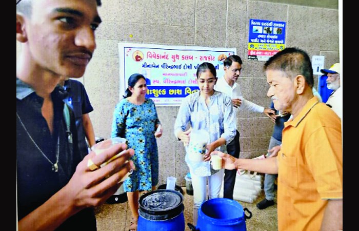 શહેરની જાણીતી સેવા સંસ્થા વિવેકાનંદ યુથ ક્લબ દ્વારા ધર્મપરાયણ જૈન પરિવાર મીનાબેન વીરેન્દ્રભાઈ દોશી પરિવારના મુખ્ય આર્થિક સહયોગથી જીવદયાપ્રેમી માનવતાવાદી સ્વ. વીરેન્દ્રભાઈ દોશીના સ્મરણાર્થે ઉનાળાની કાળઝાળ ગરમી અને આકરા તાપમાં બસમાં મુસાફરી કરતા યાત્રાળુઓને ગરમીમાં રાહત થાય તે માટે તાજી અને પૌષ્ટિક ઠંડી અમૃતરૂપી છાશ વિતરણ કેન્દ્રનો પ્રારંભ શહેરના સેન્ટ્રલ એસ.ટી. બસ પોર્ટમાં રવિવારે દાતા પરિવારના અનિશભાઈ દોશી, રિદ્ધિબેન દોશી અને કુ. હેત્વી દોશીના હસ્તે કરવામાં આવેલ. છાશ વિતરણનો અંદાજે 2000થી વધુ લોકોએ ઠંડી, પૌષ્ટિક છાશનો લાભ લીધેલ અને બળબળતા તાપમાં હાશકારો અનુભવેલ.