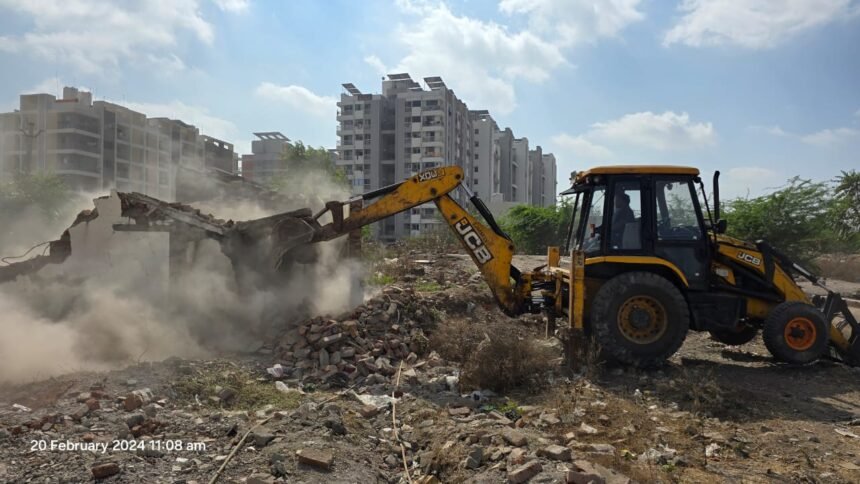 મ્યુનિસિપલ કમિશનર આનંદ પટેલના આદેશાનુસાર ટાઉન પ્લાનીંગ ઓફિસર એમ. ડી. સાગઠીયાના માર્ગદર્શન હેઠળ ટાઉન પ્લાનીંગ શાખા દ્વારા આજરોજ રાજકોટ મહાનગરપાલિકા ને પૂર્વ ઝોન વિસ્તારમાં પ્રાપ્ત થયેલા વોર્ડ નં. 4માં જુના મોરબી રોડ પર ધોળકિયા સ્કૂલ પાસે આવેલ અનામત હેતુના પ્લોટ પર થયેલા ગેરકાયદેસર દબાણ- બાંધકામ દૂર કરવા ડિમોલીશનની કામગીરી હાથ ધરવામાં આવી હતી જેમાં 10777.00 ચો.મી.ની અંદાજિત રૂા. 75,43,90,000 કરોડની જમીન ખુલ્લી કરાવવામાં આવી હતી. શહેરના વોર્ડ નં. 4માં ધોળકિયા સ્કૂલ પાસે 2 પાકા મકાન, 2 કાચી ઓરડી, 15 કાચા પાકા ઝુંપડા જેની કુલ કિંમત રૂા. 75,43,90,000 છે. આ ડિમોલીશનમાં ટાઉન પ્લાનીંગ શાખાના પૂર્વ ઝોન હેઠળના તમામ આસિ. ટાઉન પ્લાનર, આસિ. એન્જિનીયર એડી. આસી. એન્જિનીયર, સર્વેયર, વર્ક આસિસ્ટન્ટ, જગ્યા રોકાણ શાખાનો સ્ટાફ તેમજ કાયદો અને વ્યવસ્થા જળવાઈ રહે તે માટે વિજીલન્સનો પોલીસ સ્ટાફ સ્થળ પર હાજર રહ્યો હતો.