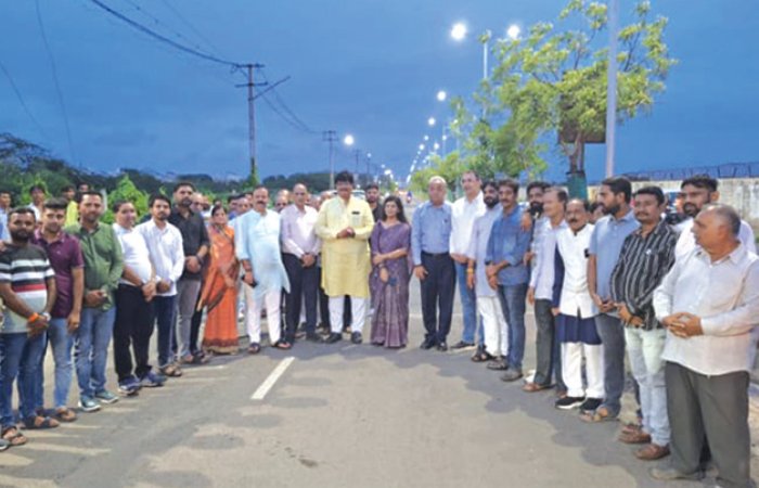 વોર્ડ નં. 2માં સેન્ટ્રલ લાઈટના કામનું લોકાર્પણ કરતા ભાજપ શહેર પ્રમુખ મુકેશ દોશી સહિતના આગેવાનો