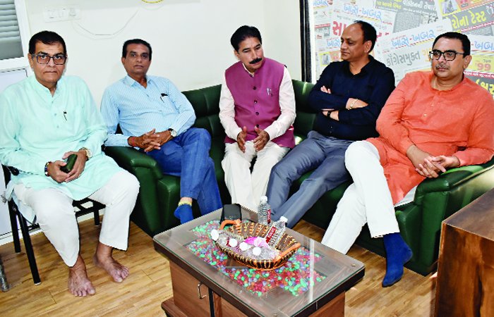ભાજપ આગેવાનો વિરેન્દ્રસિંહ ઝાલા, અશ્ર્વિન મોલિયા, રાજુ ધુ્રવ તથા મૂકેશ દોશી સાથે નવનિયુક્ત શહેર ભાજપ પ્રમુખ માધવ દવે ‘ખાસ-ખબર’ની શુભેચ્છા મુલાકાતે
