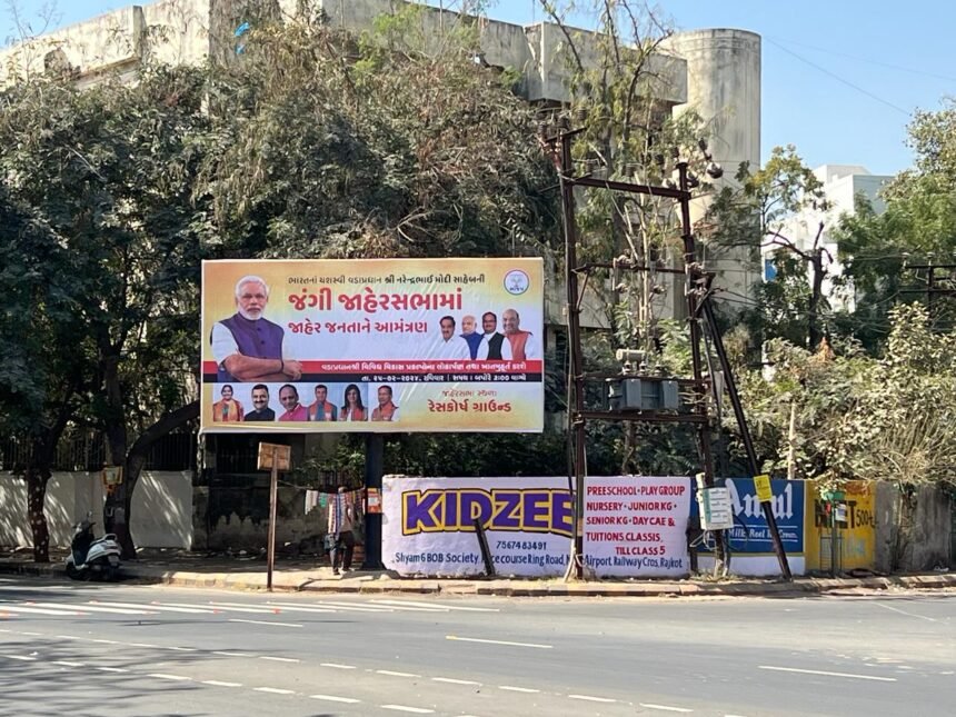વડાપ્રધાન નરેન્દ્ર મોદી દ્વારકાથી સીધા ગુજરાતની પ્રથમ રાજકોટ એઇમ્સનું ઉદ્ધાટન કરશે. જેને લઇને રાજકોટ મનપા અને શહેર ભાજપ દ્વારા શહેરના વિવિધ માર્ગો પર વડાપ્રધાનને આવકારતા પોસ્ટર અને કેસરી ધજા લગાડવામાં આવી તેમજ રોડની સાઇડ પર સ્ટોલ ઉભા કરવામાં આવ્યા છે.