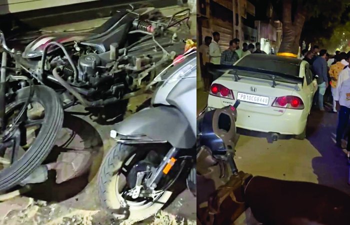 રાહદારી મહિલાને બચાવવા જતા મારવાડી કોલેજના છાત્રએ કાબુ ગુમાવતા કારે 5 વાહનને લીધા ઠોકરે