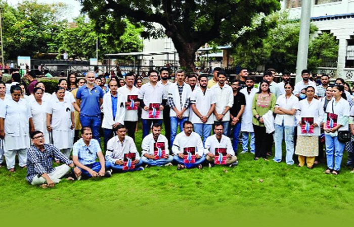 કોલકાતાની આરજીકર મેડિકલ કોલેજ અને હોસ્પિટલમાં તાલીમાર્થી ડોક્ટર પર દુષ્કર્મ અને પછી હત્યાનો મામલે તબીબ જગતમાં આક્રોશ : તબીબો અને સ્ટાફને સેફ વર્ક પ્લેશ આપવા માંગ કોલકાતાની આર.જી.કર મેડિકલ કોલેજ અને હોસ્પિટલમાં તાલીમાર્થી ડોક્ટ2 52 દુષ્કર્મ અને પછી હત્યાનો મામલો હવે દેશભરમાં જોર પકડી રહ્યો છે. તબીબી જગતમાં ભારે આક્રોશ જોવા મળી રહ્યો છે. ત્યારે પોરબંદર મેડીકલ કોલેજના તબીબો તથા સ2કા2ી ભાવસિંહજી હોસ્પિટલના સ્ટાફગણે કાળી પટ્ટી ધારણ કરી વિરોધ નોંધાવ્યો હતો. સરકારી ભાવસિંહજી હોસ્પિટલમા માર્ચ પાસ્ટ કાઢી સ2કા2 સમક્ષ તબીબો અને સ્ટાફગણની સુરક્ષાને લઇને સેફ વર્ક પ્લેશની માંગ કરી હતી.